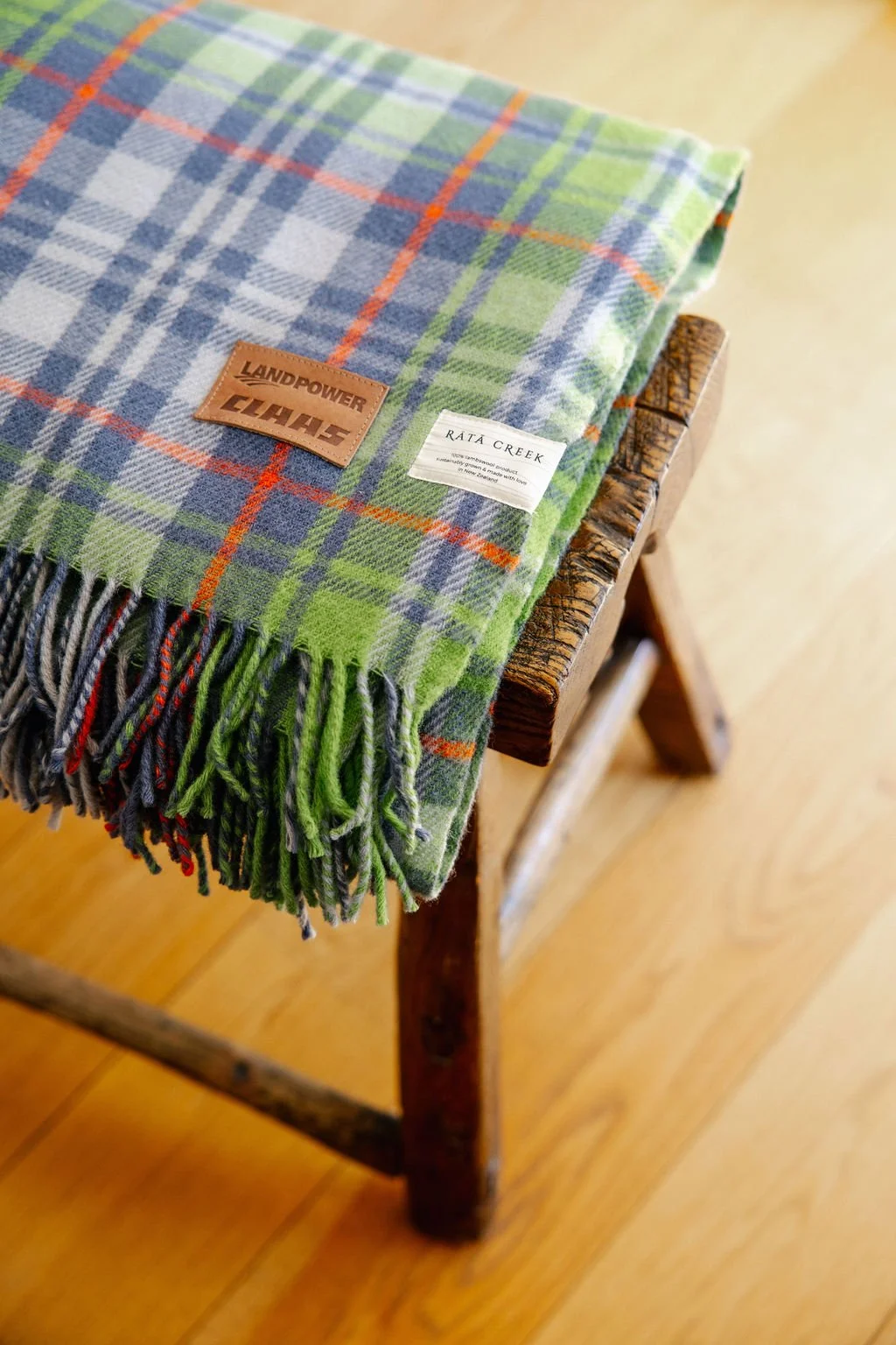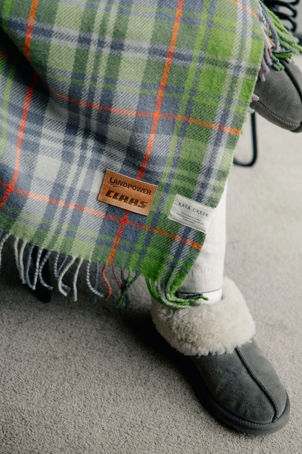 The lambswool throws were produced in New Zealand, finished with a custom Landpower | CLAAS label alongside our Rātā Creek care label, and delivered ready for gifting.
